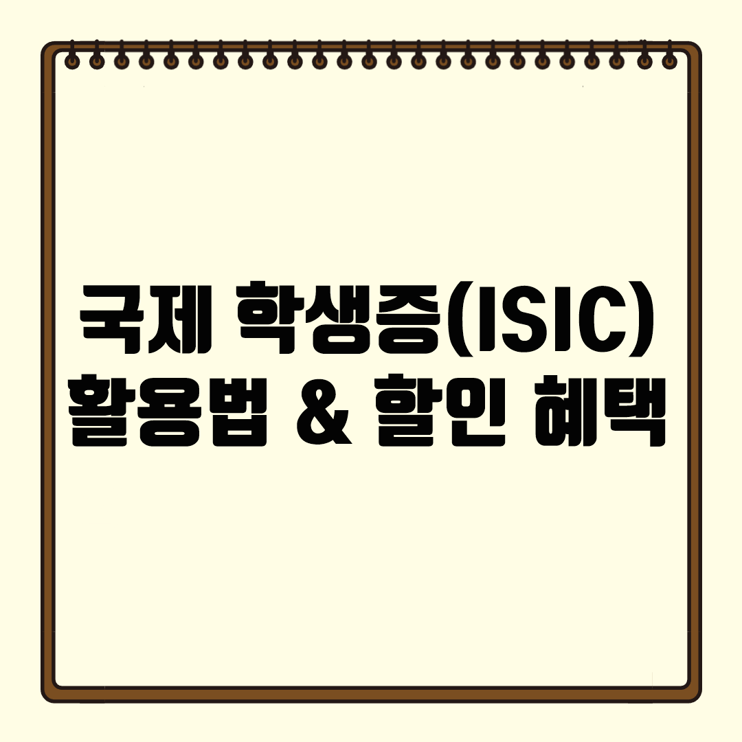 국제 학생증(ISIC) 활용법 & 할인 혜택국제 학생증(ISIC, International Student Identity Card)은 전 세계 학생들에게 여행, 문화, 쇼핑, 교통 등 다양한 할인 혜택을 제공하는 공식 학생증입니다. 이번 가이드에서는 ISIC 카드의 활용법과 주요 할인 혜택을 소개합니다.✅ 국제 학생증(ISIC)이란?✔ 유네스코(UNESCO) 공식 인증 국제 학생증✔ 전 세계 130개국에서 15만 개 이상의 할인 혜택 제공✔ 항공권, 교통, 박물관, 쇼핑, 숙박 할인 가능✔ 온라인 쇼핑 & 디지털 서비스 할인 지원✔ 학생 신분 증명 가능 (일부 국가에서 학생 비자 발급 시 유용)📌 TIP: ISIC 카드는 대학생뿐만 아니라 고등학생도 신청 가능합니다.✅ ISIC 카드 발급 방법✔ 온라인..